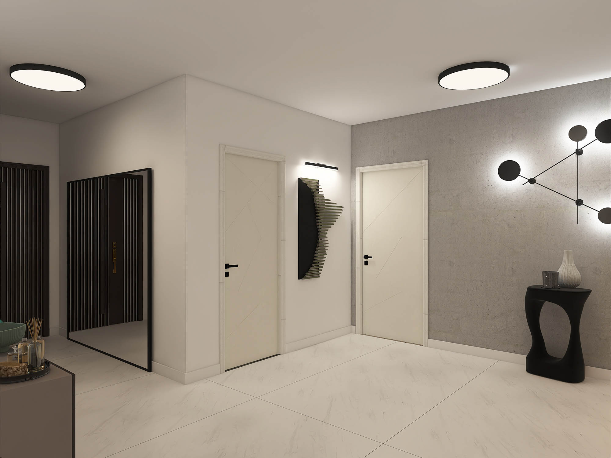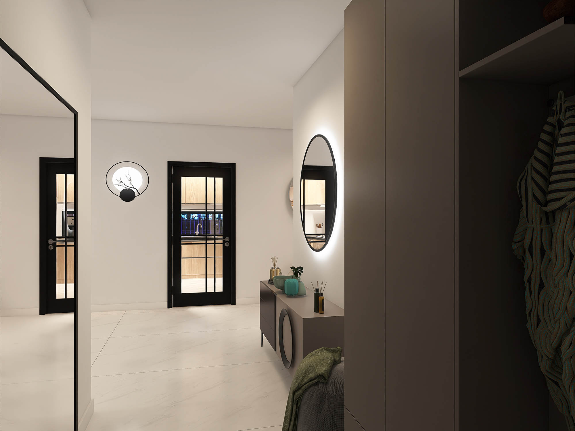 Cu un design simplu ?i direct, mobilier ?i elemente de decor cu linii clare ?i forme geometrice, apartamentul ofer? confortul ?i eficienta necesare celor ce locuiesc aici.