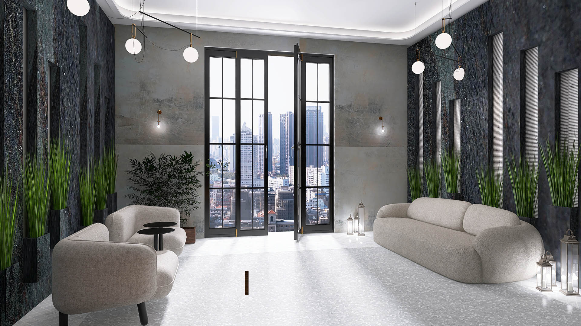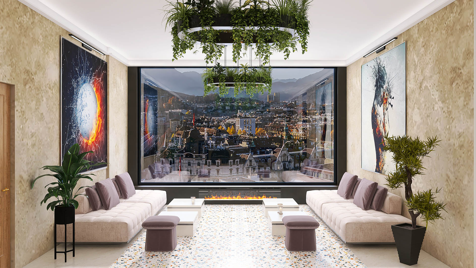 Zona de lounge este dotata cu o minibiblioteca, iar serile devin mai c?lduroase admirând de lâng? ?emineu priveli?tea asupra ora?ului.