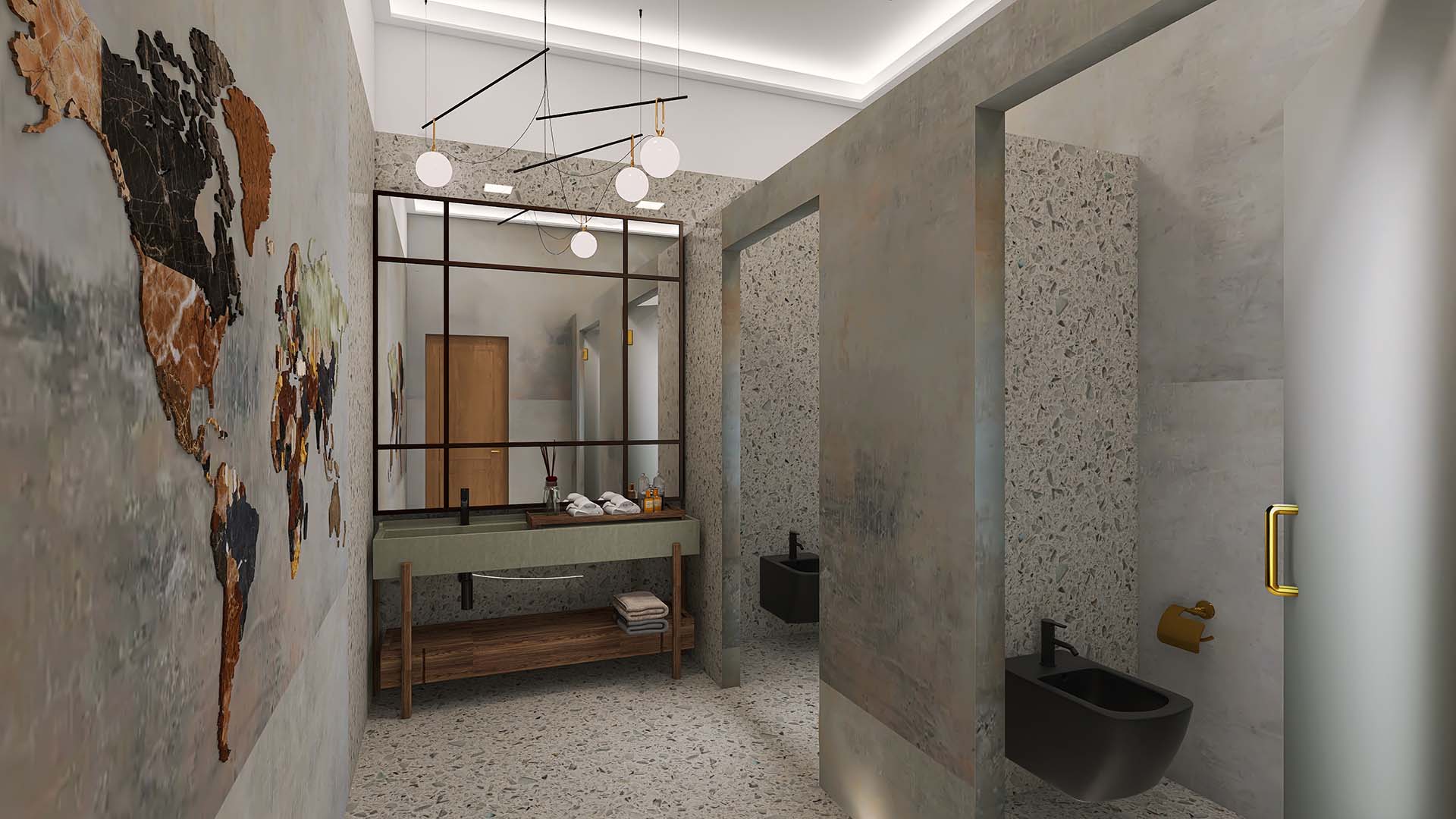 Camera single denumita "METALWOOD" este amenajata în stil industrial contemporan cu un design inspirat de cele 2 elemente FENG SHUI metalul ?i lemnul.