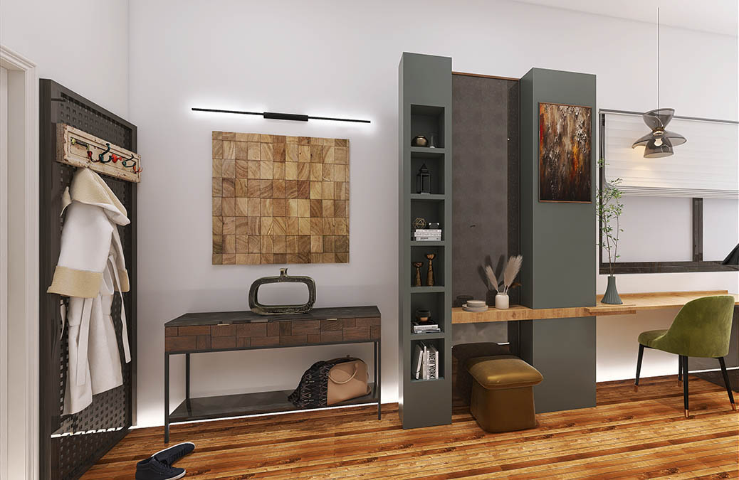- Culorile neutre, cum ar fi gri, negru, alb ?i tonuri de maro, domin? paleta cromatic?. Aceste culori contribuie la crearea unei atmosfere calme ?i coerente, permi?ând materialelor naturale s? ias? în eviden??.
